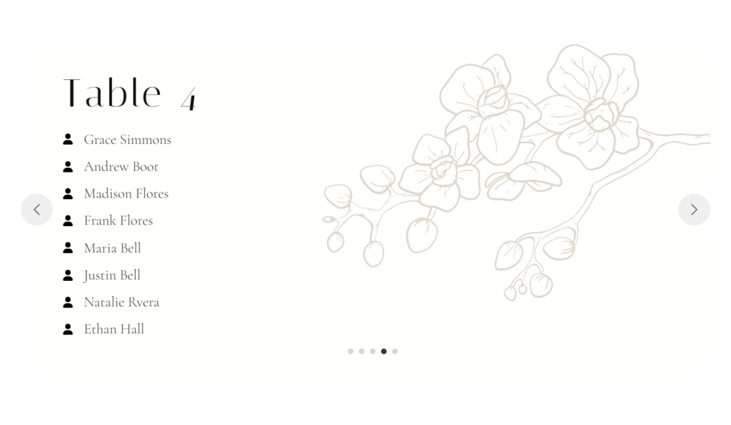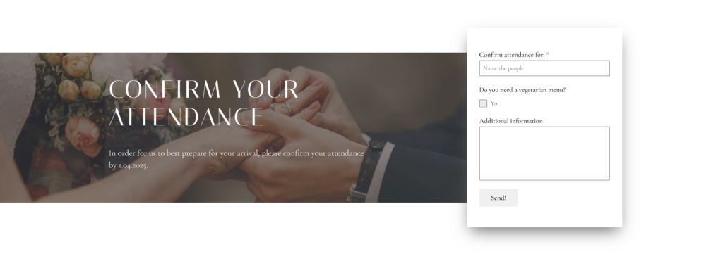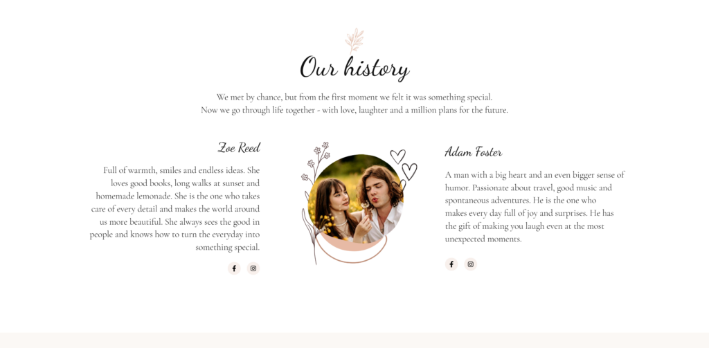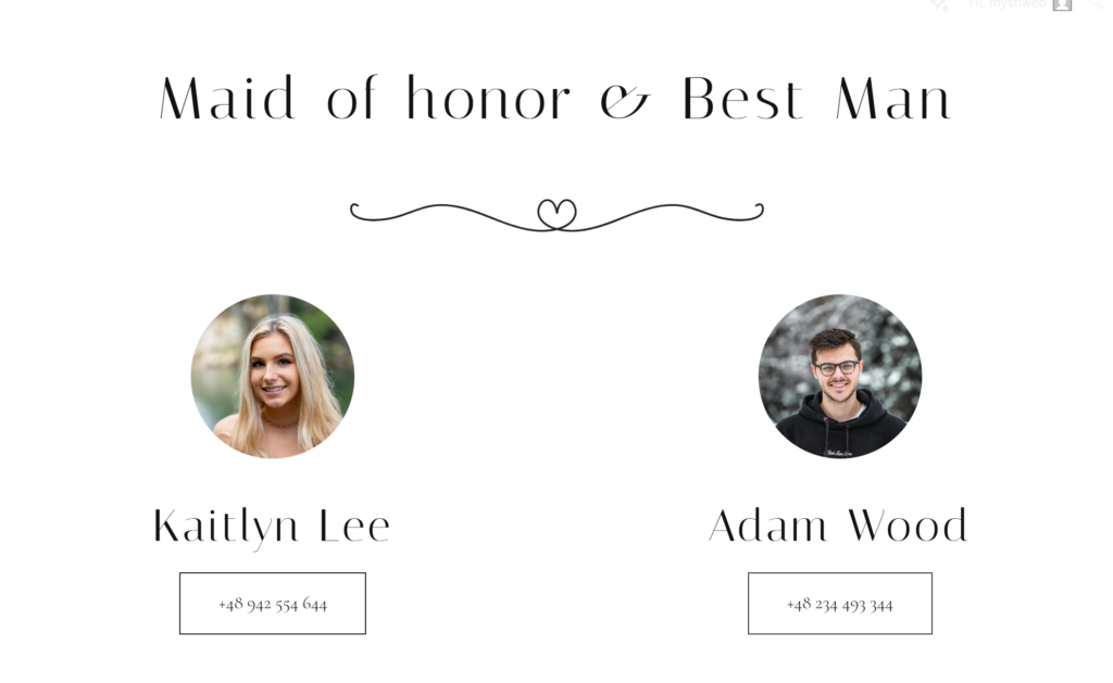 A short, personal section dedicated to witnesses – you can add a photo, a name, a few words from yourself or… a contact so everyone knows who to ask about important things during the wedding!