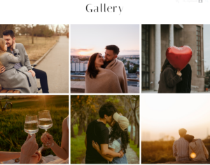 A place for photos from your travels together or archival photos. Possibility to add a gallery with photos from the wedding after the ceremony.